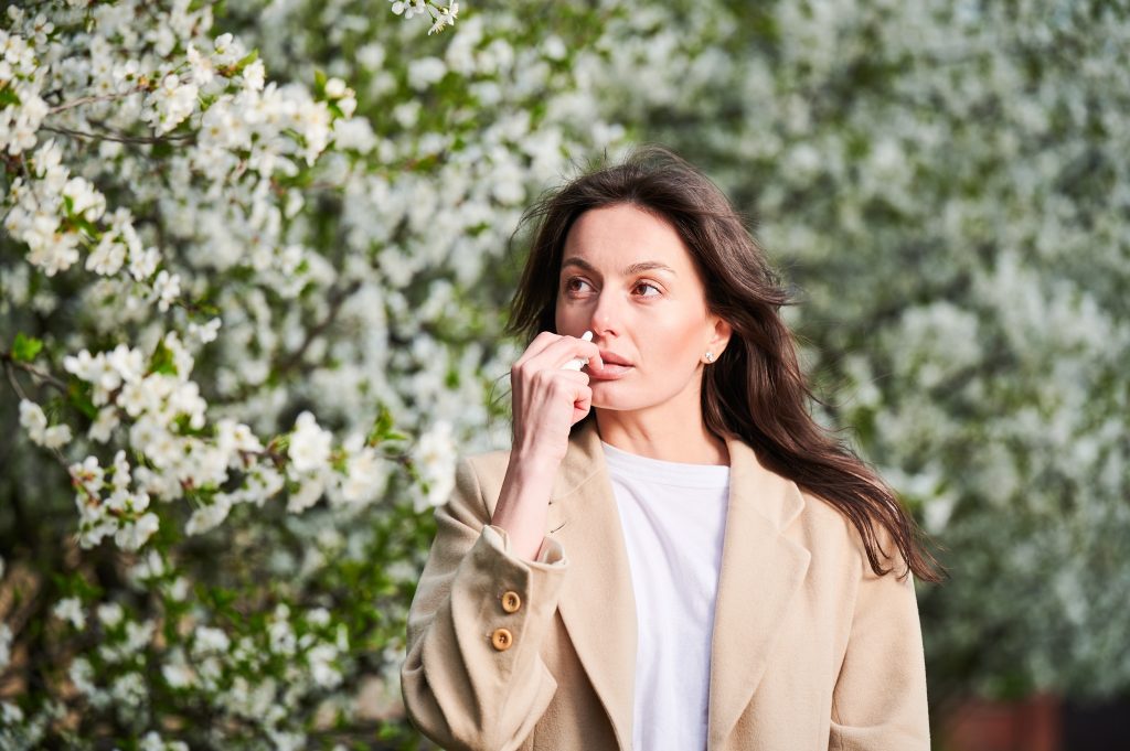 Self-administering the nasal spray (56 mg or 84 mg, as prescribed) in two to three sprays per nostril